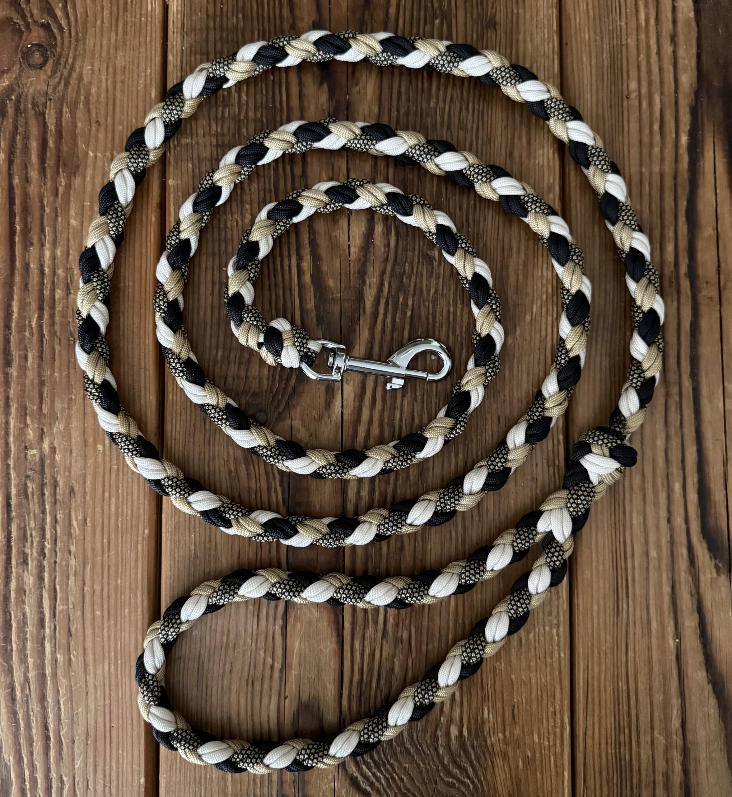 Prachtige door mijzelf gemaakte riem van Paracord van circa 2 meter lengte. Deze riem gemaakt van duurzaam materiaal en is geschikt voor honden van 10 tot 20 kilo. Dikte van de riem is 1,2 cm.